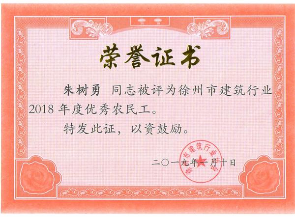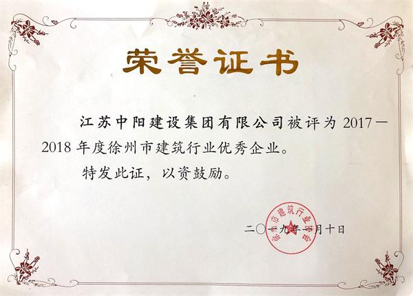 2019年元月20日下午,徐州市建筑行業(yè)協(xié)會在市人民舞臺隆重召開2019年創(chuàng)新發(fā)展論壇暨表彰大會。中陽集團被授予“優(yōu)秀企業(yè)”榮譽稱號;公司董事長王金波同志被評為“優(yōu)秀企業(yè)經(jīng)理”,青島分公司技術(shù)工人朱樹勇同志被評為“優(yōu)秀農(nóng)民工”。