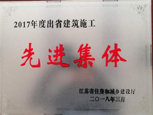 青島分公司、青海分公司被江蘇省住房和城鄉(xiāng)建設(shè)廳評(píng)為2017年度出省建筑施工先進(jìn)集體。青島分公司經(jīng)理?xiàng)顤|明同志、青海分公司劉前昌同志被江蘇省住房和城鄉(xiāng)建設(shè)廳評(píng)為2017年度出省施工先進(jìn)個(gè)人。