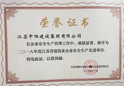 近期,我公司被江蘇省建筑行業(yè)協(xié)會建筑安全設備管理分會評為“2018年度江蘇省建筑企業(yè)安全生產(chǎn)先進單位”;公司董事長王金波同志、副總經(jīng)理呂輝、楊衛(wèi)東同志被評為“2018年度江蘇省建筑業(yè)安全生產(chǎn)先進個人”。